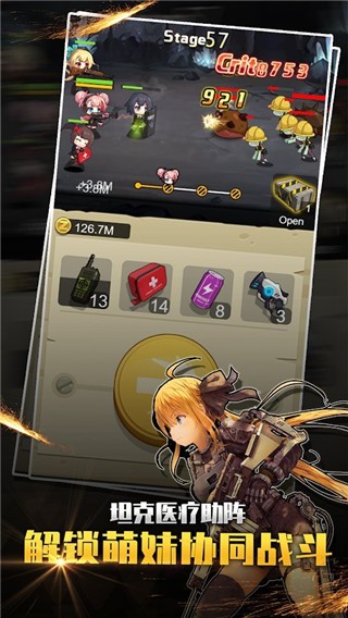 少女组合会在你离线后持续击杀源源不绝的僵尸为你赚取资源。