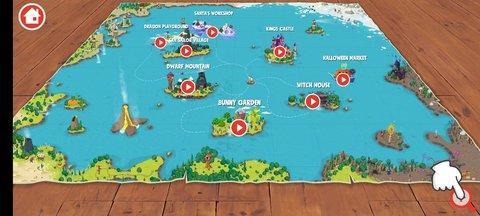 1、丰富的游戏内容:包含国王城堡、矮人山、WITCH HOUSE、龙游乐场、天空水手村和兔子花园等多个场景,每个场景都有独特的玩法和挑战。