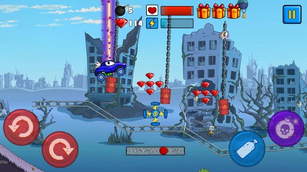 僵尸赛车一款独特的冒险闯关游戏,游戏里面玩家需要驾驶赛车收集各种道具,消灭所有僵尸,安全到达终点才能获胜,还有丰富的关卡等你体验,每个关卡都能给你带来不一样的游戏乐趣,让你可以在这里玩得过瘾,游戏操作简单易上手,灵活操作赛车帮助你轻松挑战所有关卡。
