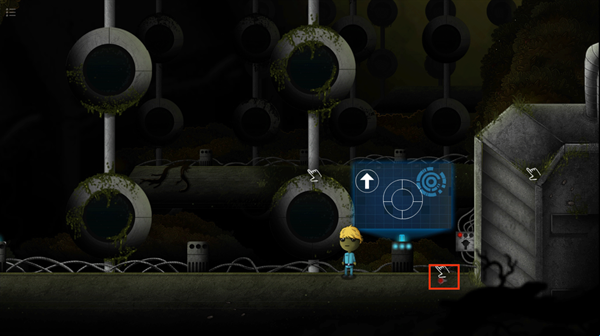 1、下载进入沙皮克月球探索游戏,首先我们来到铁门前需要装置按钮才能开启;