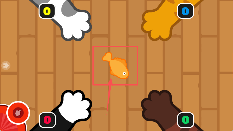 4、点橙色小鱼操控移动,躲开其他动物攻击,争取让四个角落爪子旁数字得分增加。