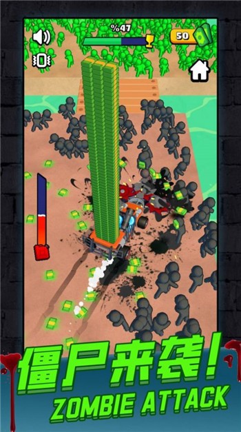 2、你可以像割草一样来切割僵尸,面对大规模的僵尸,你可以升级你自己的齿轮车来展开冒险。
