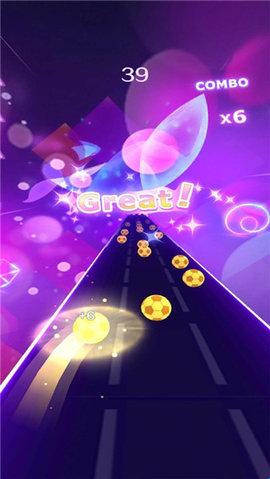 3、独特的玩法:玩家需要控制小球跟随音乐的节奏进行跑酷,考验玩家的反应能力和手速。