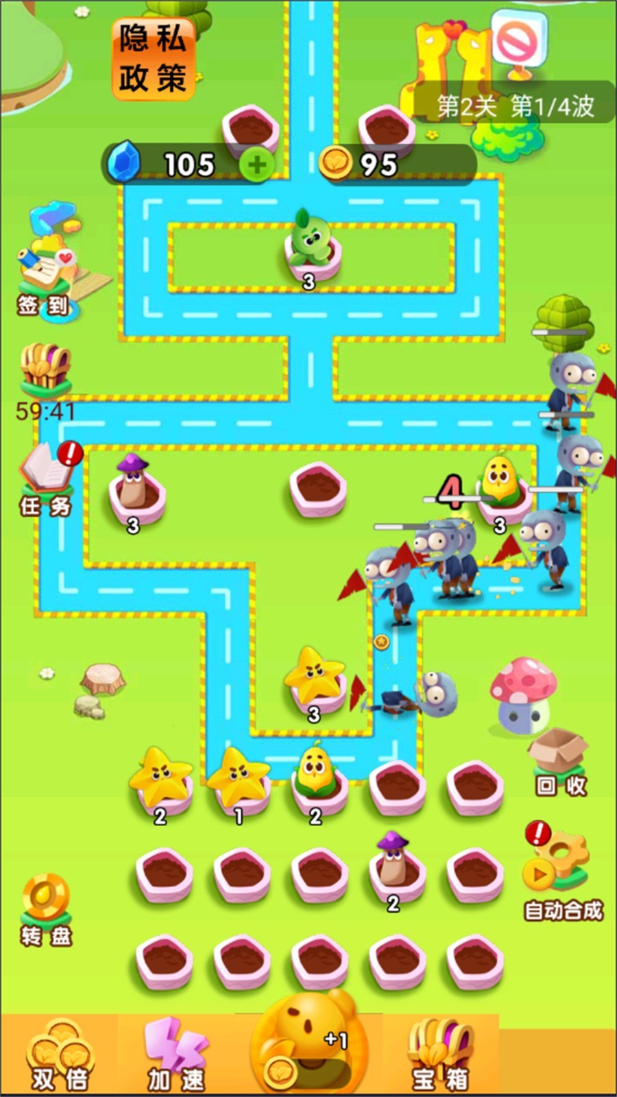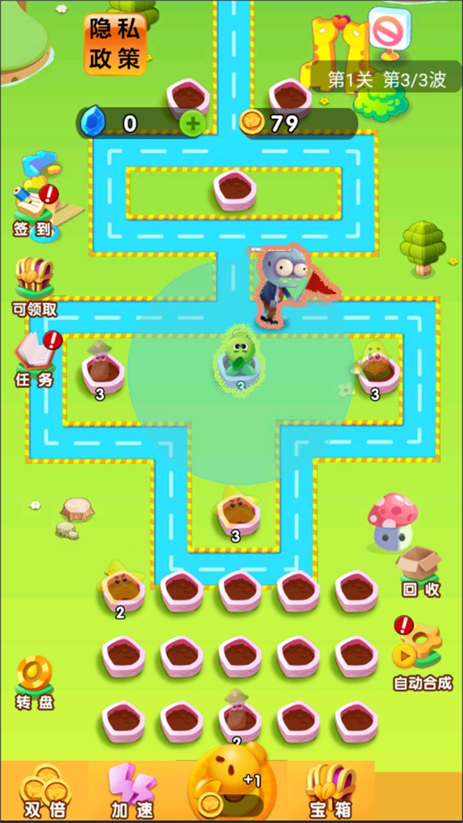 1、完成新的植物,升级自己的等级,不断提升自己的战斗力,面对入侵的丧尸开始合理布局。