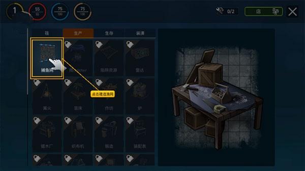 2、点击建造渔网;