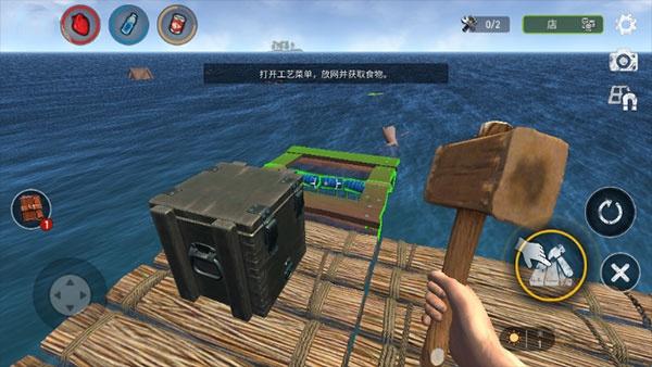 2、获取物资,制作武器,加固木筏或者建造堡垒;