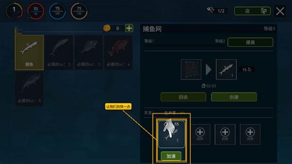 6、点击加速,可以快速捕捉鱼;