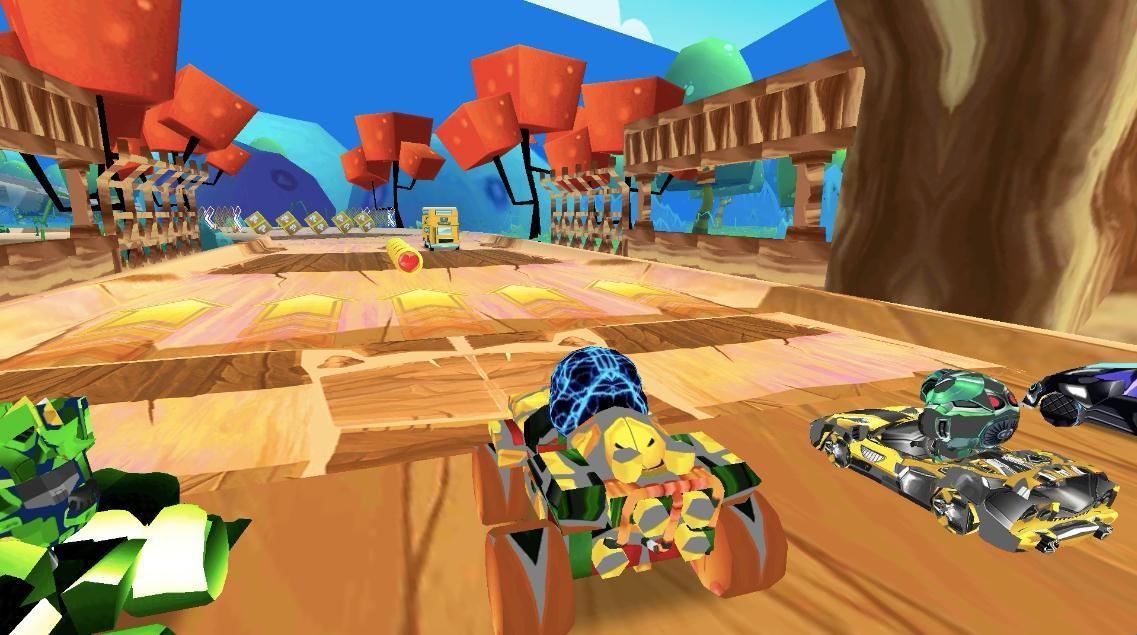 1、选择车辆和赛道后即可开始游戏,地图中有许多道具和陷阱,都会对赛车的速度造成影响。