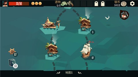 4、随机地图:每个世界的地图都是随机生成,你可以在地图上选择“战斗”“奇遇”“市场”“酒馆”