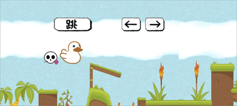 4、第三个小游戏,通过上面的跳和左右按钮让鸭子爬上最右侧的山顶即可
