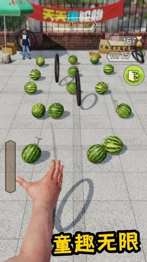 1、这款游戏就是为了让大家能模拟体验到地摊套圈的游戏过程。
