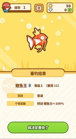 3、通过点击在主画面中出现的“食物”喂食鲤鱼王、对鲤鱼王进行“特训”,以提升它的“跳跃力”。每次世代交替,都可以让鲤鱼王成长。主角可以和成长后的鲤鱼王一起挑战联盟。