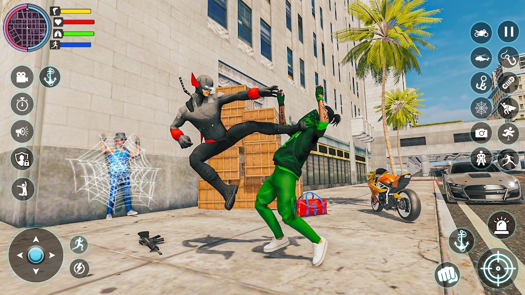 绳索英雄战争Miami RopeHero是一款热血的动作射击游戏,玩家能够体验独特的游戏内容,整体游戏玩法体验感还是不错的,玩家发现各种任务进行竞技,能过以第三人称视角进行游戏,每个超级英雄都能够对决,一起在城市中自制犯罪活动,整体体验感还是不错的,快来试试吧!