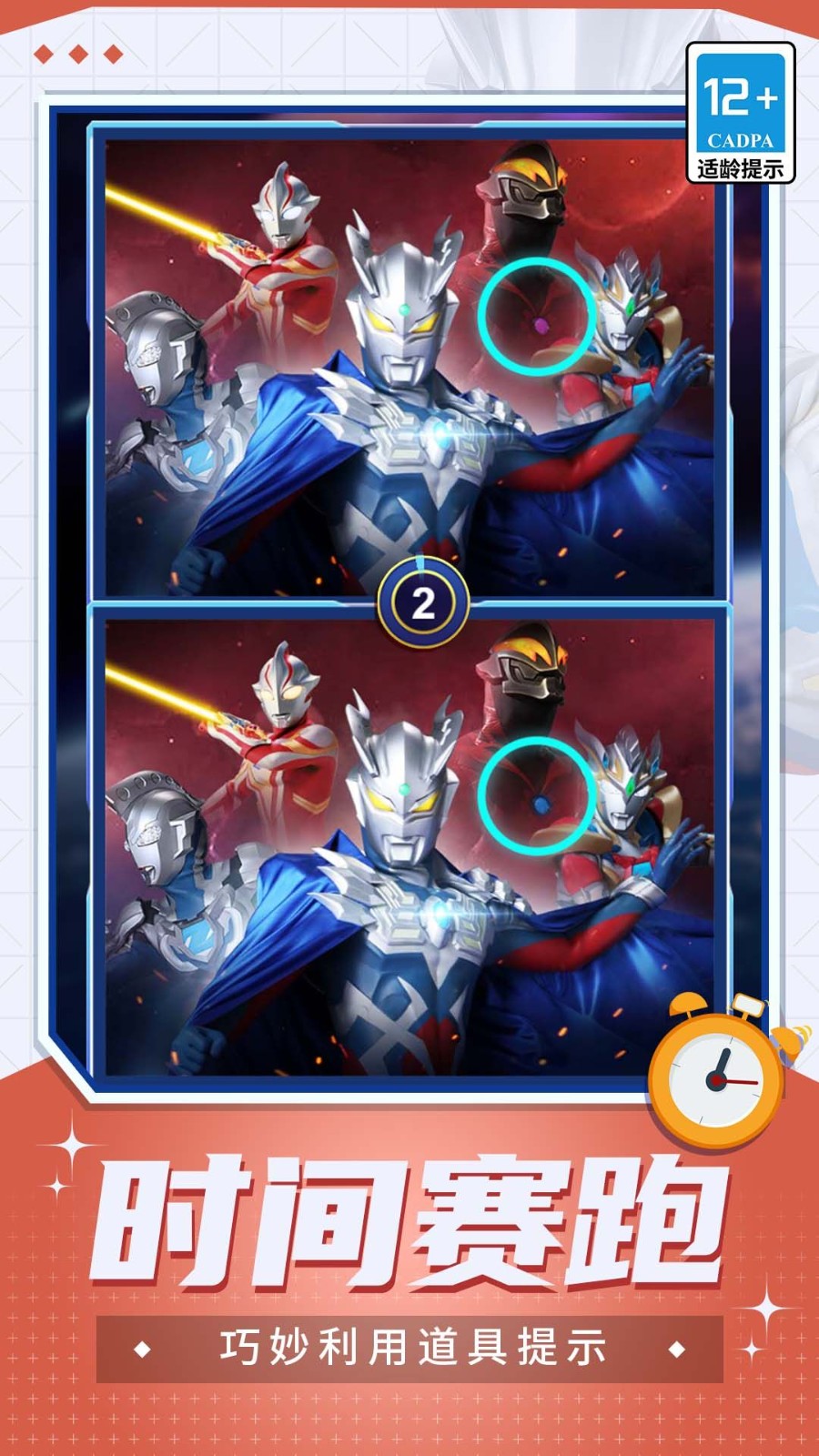 奥特曼大集结一款非常有趣的找茬游戏,游戏采用经典奥特曼为主题,玩家需要在两张相似的奥特曼图片中找到不同之处,非常考验玩家的眼力,还有丰富的关卡等你体验,每个关卡都能给你带来不一样的游戏乐趣,多样的挑战模式,海量的游戏道具,可以帮助你更快的完成关卡挑战任务。