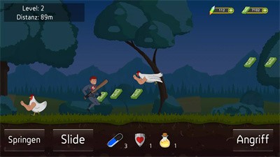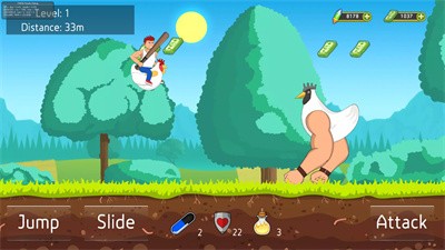 突变鸡战争是一款趣味格斗竞技手游,充满危险的冒险中和变异鸡展开对决,使用不同的武器进行战斗冒险,收集关卡中的钱币升级武器,需要注意的事躲避鸡的攻击,玩家的生命值抵挡不住鸡的多种公鸡,受伤能够通过回复道具保持状态,闯关的距离越长获得的资源也就越多,体验感还是不错的,快来战斗吧!