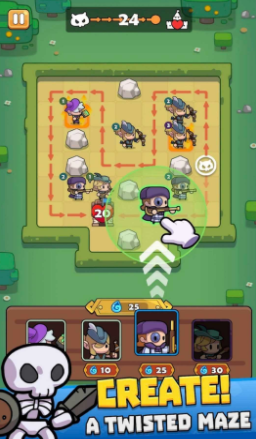 2. 强化英雄,通过持续成长强化实力,守卫防线,征服更艰难的挑战关卡。