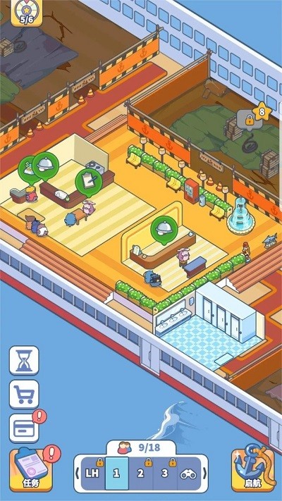 2、玩家需要全方位地经营管理自己的游轮,从客房布置到娱乐活动,都要精心策划。