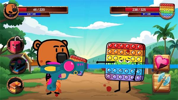 游戏的玩法大家一定不会陌生,玩起来双人对打游戏很像,玩家可以选择自己想用的人物进行游戏,努力将敌人击倒在地,就可以获得游戏胜利了。趣味十足的一款休闲手游,大家不要错过啦!
