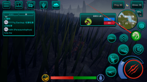 6、为了防止种间群体,需要舒适度(在食草动物中,可以)靠近另一个比你更强的恐龙物种,你会失去舒适度,你的舒适度颜色会变成红色,随着舒适度的降低,你会生长得更慢。