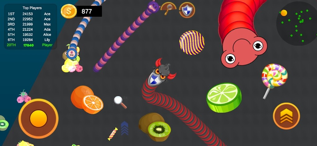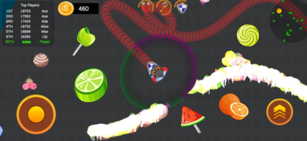 3、在地图上吃糖果并成长,吞噬其他玩家,您需要控制蛇以避开各种障碍。