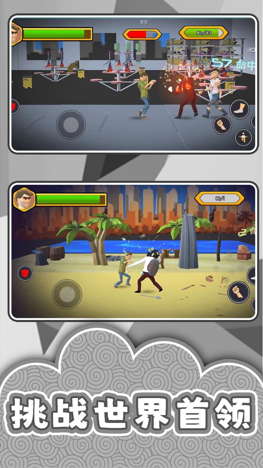 1、体验格斗的乐趣,四处挑战对手,发起冲击,看谁可以获得胜利。