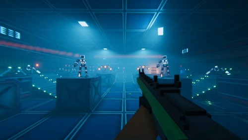 2、通过这个绿色的幕布之后,我们会来到另一个空间,这个时候我们会看到一个外星人攻击我们,我们需要使用武器对其进行射击;