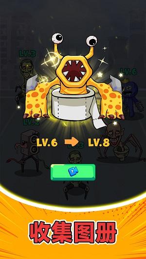 2、吞噬小怪物,积累实力,不断壮大自己的身躯,成为最强大的马桶人。