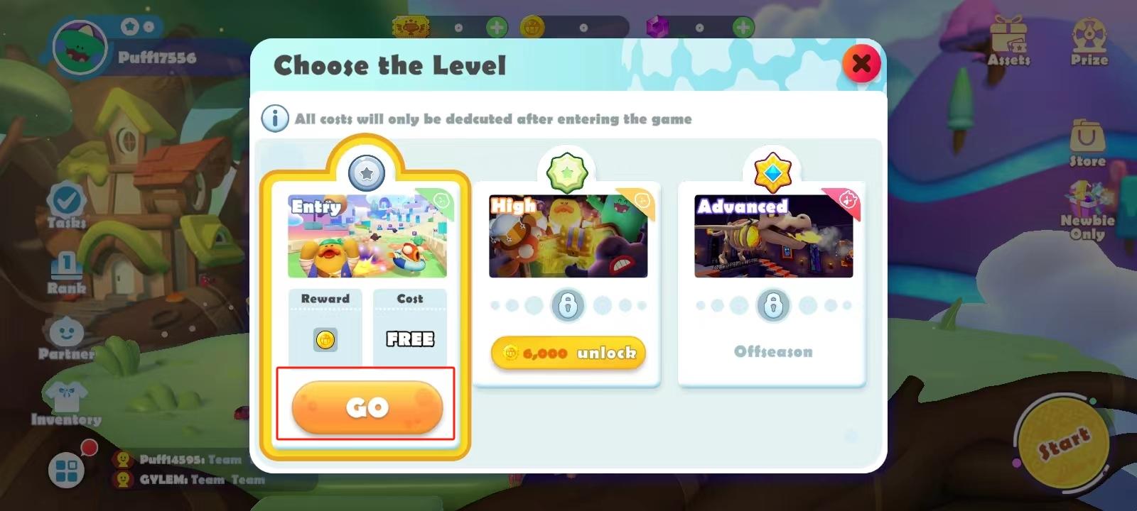 1.在本站下载安装好PuffGo帕提派对,并通过加速器进入游戏;