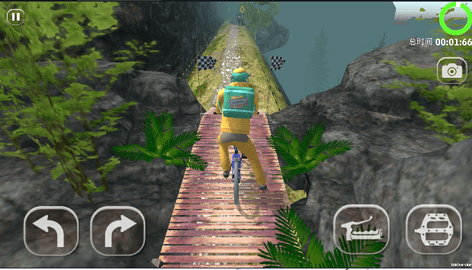 1、有些搞笑的自行车驾驶游戏,骑乘自行车在山林冒险。