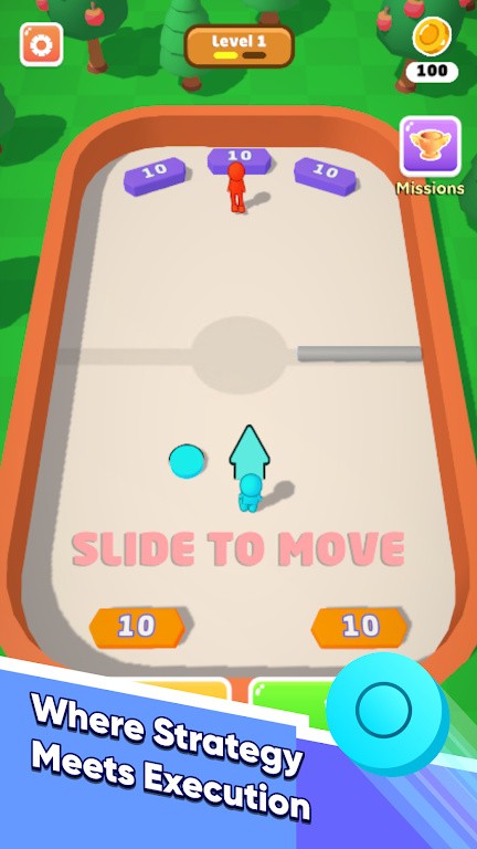 2、尽量将飞盘打在星星上,分数越高胜利的机率越大,红色的星星在局内时一直移动的,但加分也高;