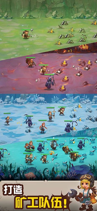 4、自由升级组合,建立自己的专属阵容,成长一支新的强大矿工队伍。