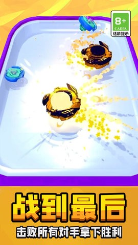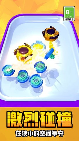 2、操作简单:游戏中的操作非常简单,只需通过触摸屏来控制陀螺的运动和攻击,就可以轻松体验到游戏的乐趣。