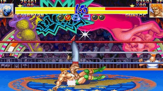 1、经典格斗街机游戏《摔跤霸王》的续作,增加了更多的内容可以选择。