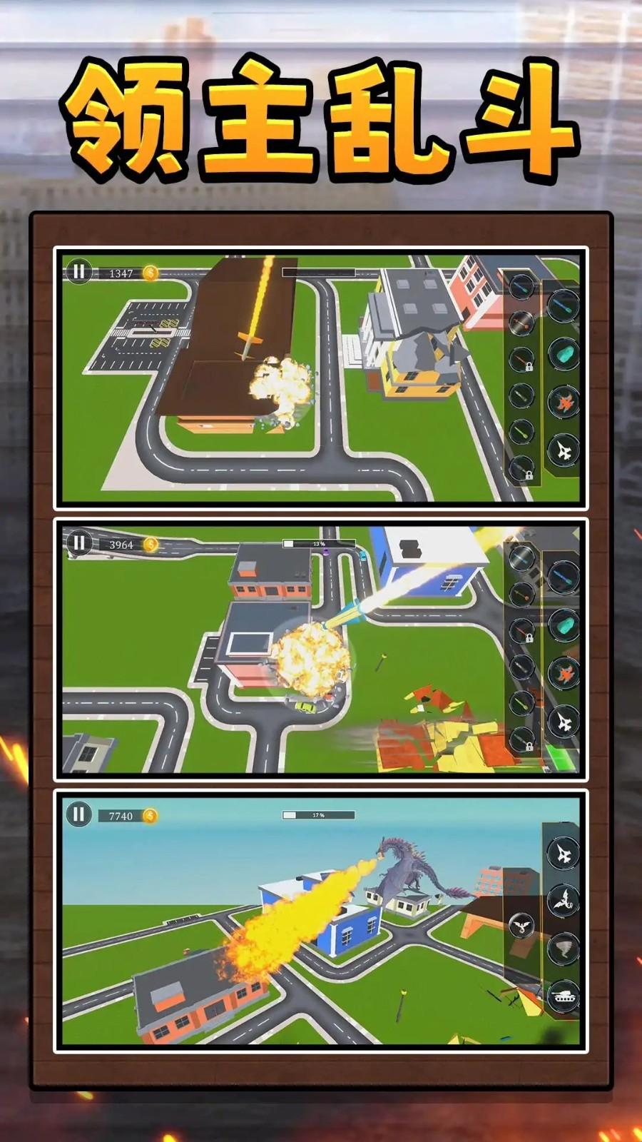 领主大乱斗2是一款超级解压的战斗冒险游戏,在这里玩家可以化身为一个上帝对城市开始狂轰乱炸,很多丰富的场景冒险对决可以感受,超多的军事武器装备都可以供你使用,游戏很多有趣的内容模式可以体验,在这里超级棒的然都竞技过程,能够给你带来不错的游戏玩法,喜欢破坏的玩家可以来这里试试吧!
