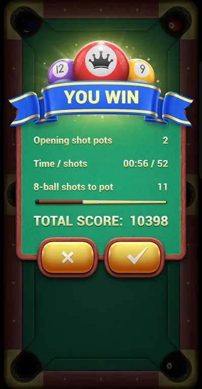 1、丰富多样的关卡,游戏中有多达上百种的关卡,不仅仅有经典的8球模式和斯诺克模式还有各种各样的花式台球。