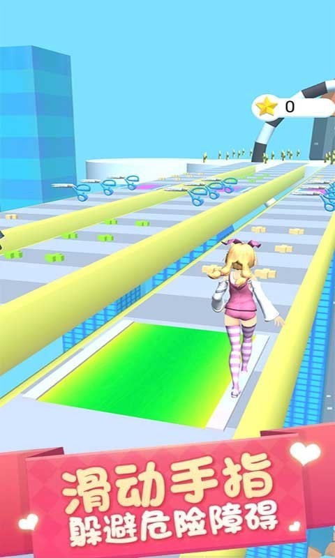 1、在奔向终点的路上,你可以自由拾起任何颜色的发套创造你的长发,要小心那些大剪刀和路上的各种障碍哟,保护你的长发;