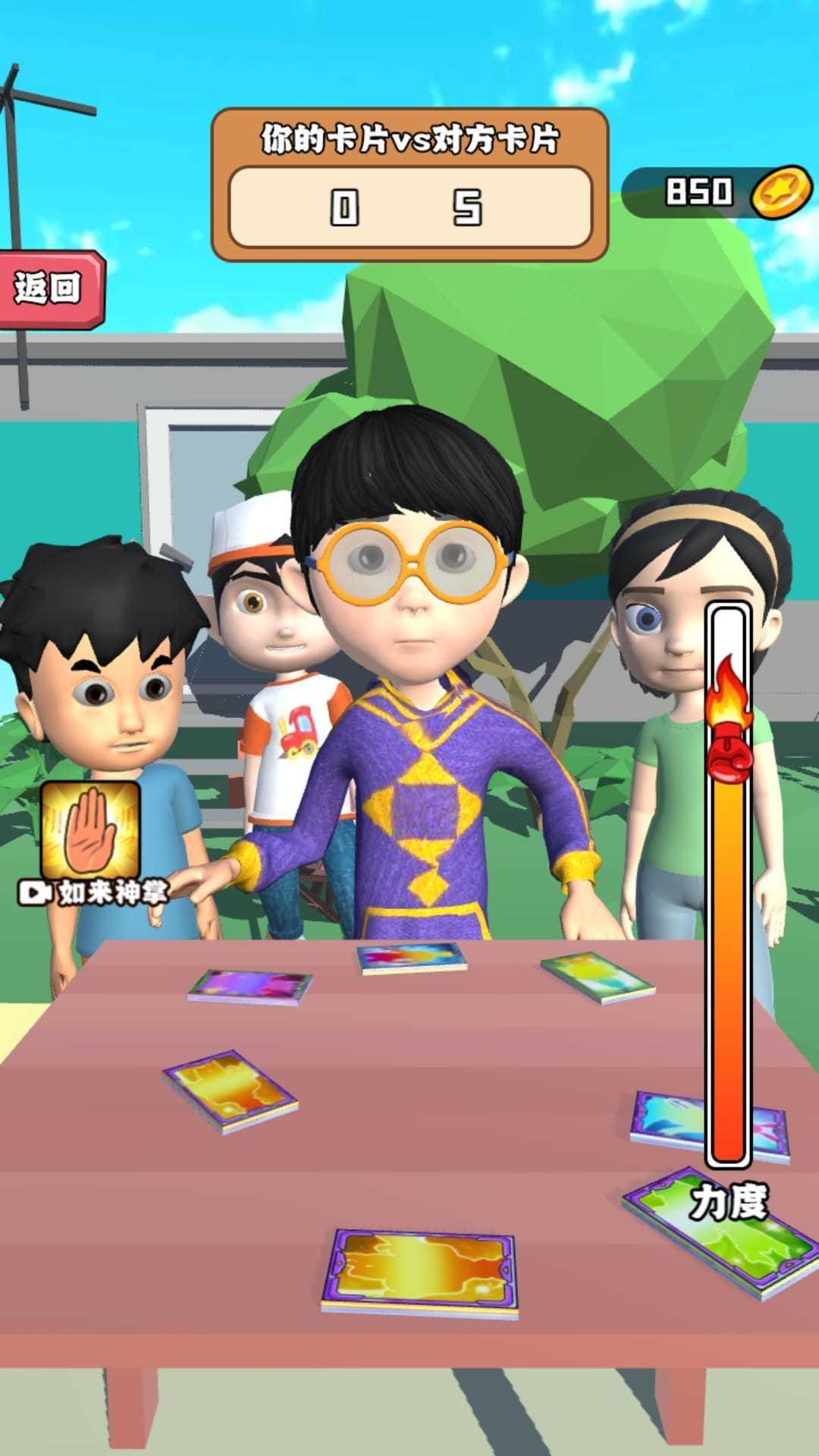 2、可以按照屏幕上显示的玩法步骤去控制拍卡的力度大小,最后谁的卡牌多就代表了胜利;