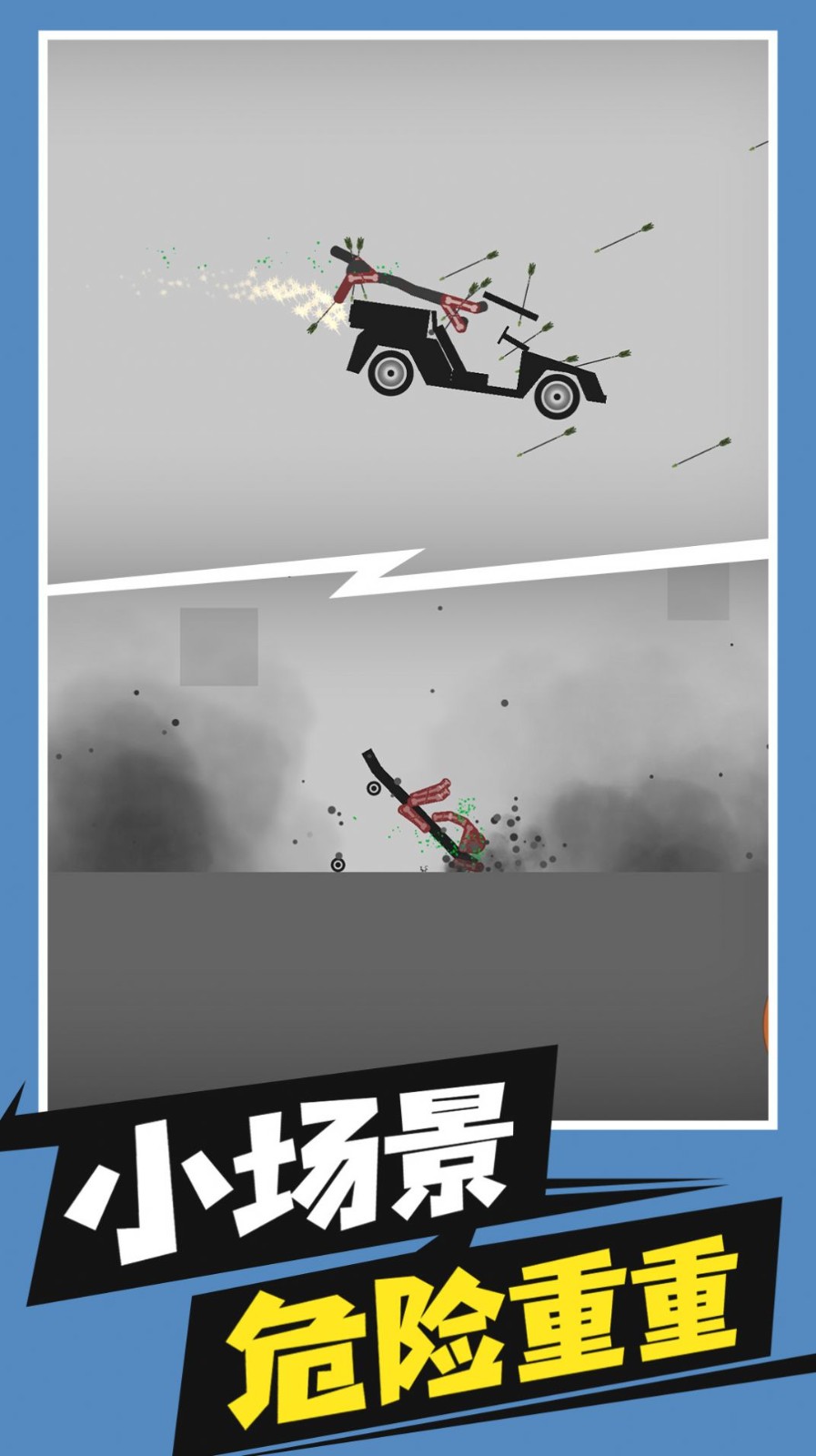 非常经典好玩的解压动类游戏。玩家将扮演火柴人驾驶战车利用不同的物理效果消灭敌人!游戏操作比较灵活,驾驶不同的载具和追逐的敌人进行的碰撞!游戏中有多种末日战车,还能对战车进行强化!7种多阶强,让你拥有强大的战车之王!还有独特真实的布娃娃系统,能令人难以置信的物理反馈,立刻与敌人战展开刺激的战斗!