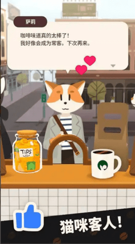 2、出现各种猫咪客人,每种都有各自的故事和外观,完成属于你的收集图鉴。