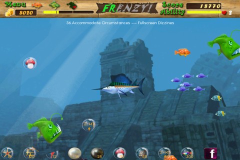 游戏的一代就已经很有创意了,说得通俗一点就是大鱼吃小鱼,几秒钟之前还追得你到处跑的鱼,在几秒种之后就反过来就被你追杀了~~~在二代中又加入了空中的小飞虫,传说中的“飞鱼”诞生了!
