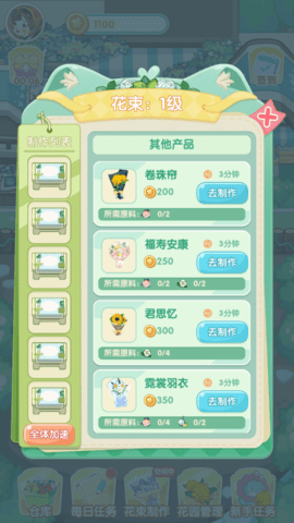 2、完成多样的鲜花种植内容玩家可以自由选择,每天都会有全新的订单等你挑战。