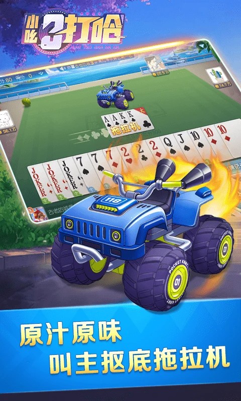 小吆三打哈一款非常好玩的扑克牌游戏,游戏起源于湖南,类似于升级和拖拉机玩法,玩家需要进行三打一,非常考验技巧与配合,还有超多不同的玩法模式等你体验,炫酷的打牌特效和搞笑的配音,大大增加了游戏的可玩性和趣味性,喜欢的小伙伴快来下载试试吧。