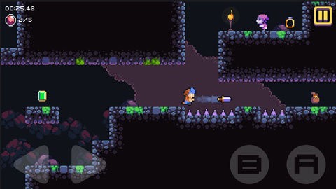 匕首侠-盗手机版是一款紧张刺激的闯关冒险类游戏,世界用怀旧像素块完成制作,有一种朦胧的美感。你可以控制侠-盗,利用魔法匕首之力,和漆黑的地牢中的小怪与危险对抗。每当临近地图的终点时,请集中注意力,因为boss具有着更危险的属性,与独特的攻击方式,给你的生命带来危险。