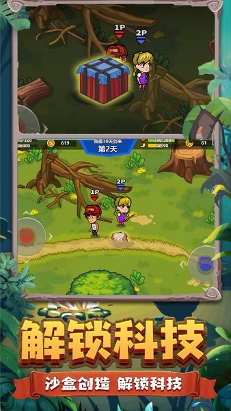 双人荒野求生安卓版是一款玩家将会开始自己的求生挑战的策略经营类游戏,双人荒野求生安卓版中需要玩家在荒岛上营建各种设施,确保自己可以在荒岛上生存下去。荒野之中开始自己的求生挑战吧,寻找足够的资源,确保自己的存活。