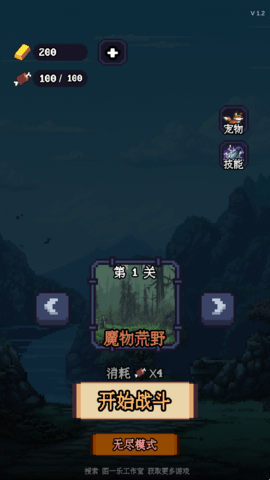 1、像素风格的肉鸽冒险游戏,扮演一名勇者穿梭于异世界的副本打怪。