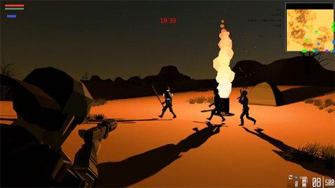 1、在黑暗的荒漠上生起篝火,用枪械武器,向你的敌人射击;