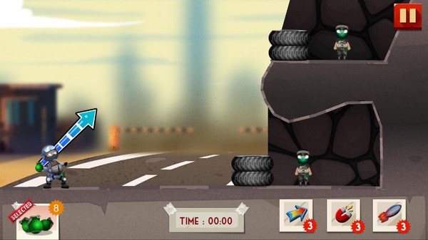 扔手雷贼准是一款有趣的闯关竞技游戏,游戏玩法上手也是很简单的,通过丢手雷进行冒险,在这里多种闯关竞技体验感十足,多种作战模式可以选择,游戏中各种考验在这里等着你俩面对,解决各种不同的困难冒险,游戏在这里做的还是很逼真的,玩家扔手雷的时候考虑好反弹的特点,有兴趣的玩家快来试试吧!