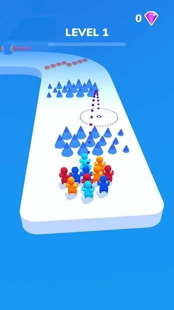 人群小跳王游戏里面我们是需要越过障碍来到达我们的目的的,可以去减少失败的次数,我们每一关都是有奖励的,要是我们每一关少了人的话奖励就会被减少。