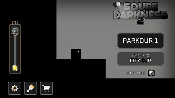 1、简约画风的横版闯关类游戏,操作一枚黑色的小方块,在城市里闯关。