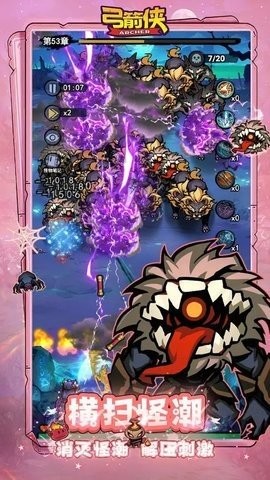 弓箭侠最新版是一款有东方特色的肉鸽式塔防冒险游戏,玩家可以招募神话故事中的角色,化身为弓箭侠,为了守护正义与邪恶的怪物潮进行战斗。游戏内置有垂直的成长体系,每个角色都有几个有趣的玩法套路,可以通过不断的战斗升级来获取。操作模式也是十分简单,放置就能自动打怪,让大家能体验割草游戏所带来的快乐。
